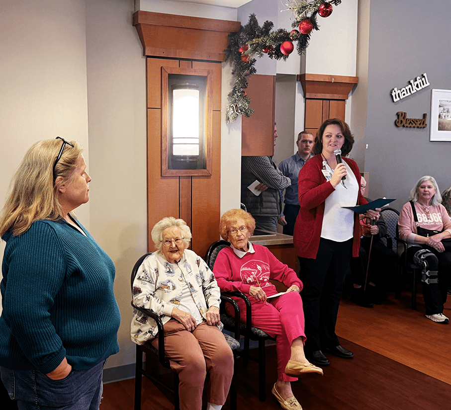 Adding a particularly meaningful touch, residents of SMC Skilled & Long Term Care who already enjoy the sunroom shared in the celebration, including May Taylor, age 99, and Dorothy Sorensen, age 97, reminding everyone why the space matters so deeply.