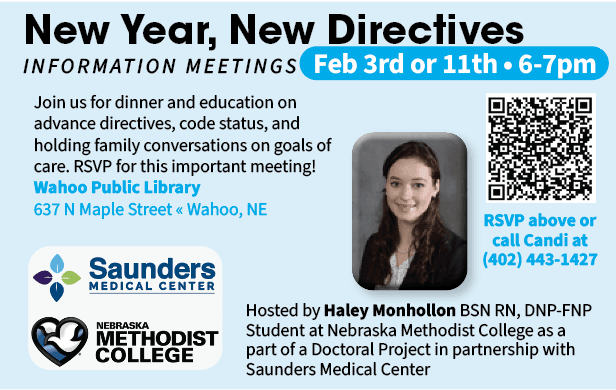 Join us for dinner and education on advance directives, code status, and holding family conversations on goals of care. RSVP for this important meeting!